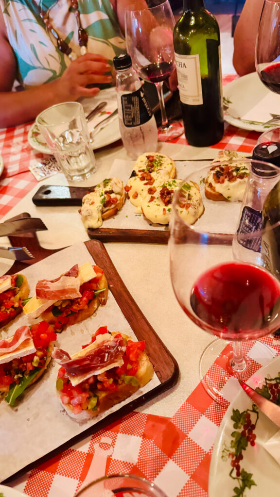 Escolhemos um vinho logo no início e vale destacar: o restaurante tem uma boa carta de vinhos, com rótulos clássicos e garrafas a preços bem honestos, o que faz toda diferença na experiência.