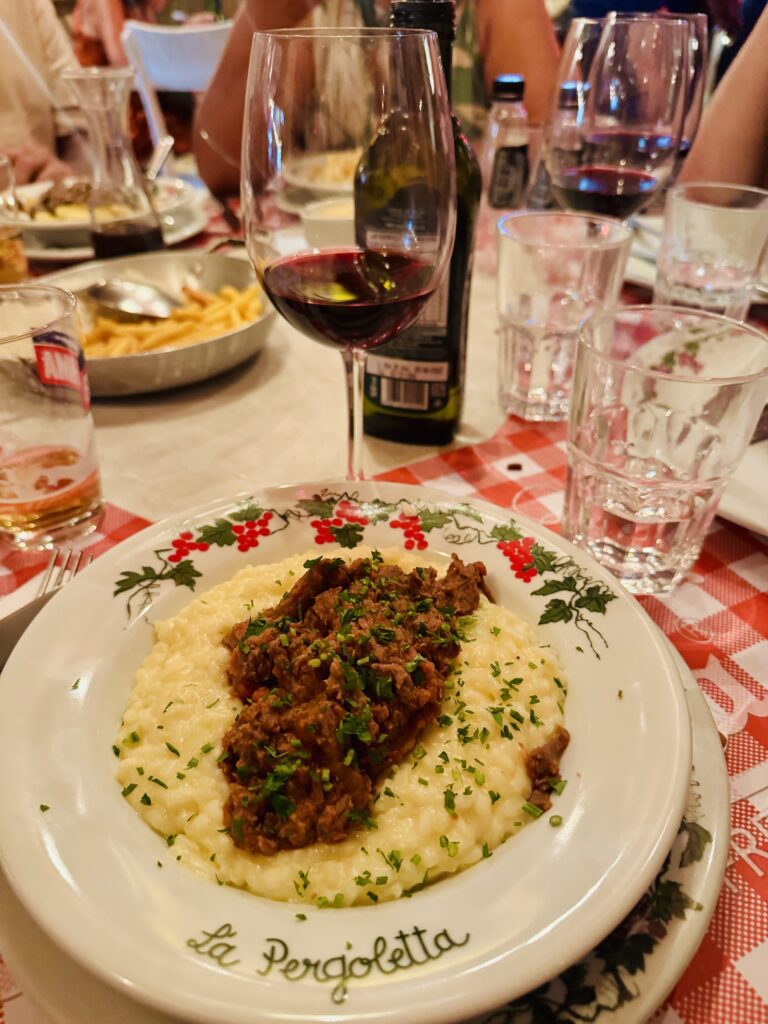 Um detalhe legal é que na saída tem espaço onde você pode comprar produtos para levar para casa, como massas frescas, pães e vinhos. Um convite para estender a experiência além do almoço.